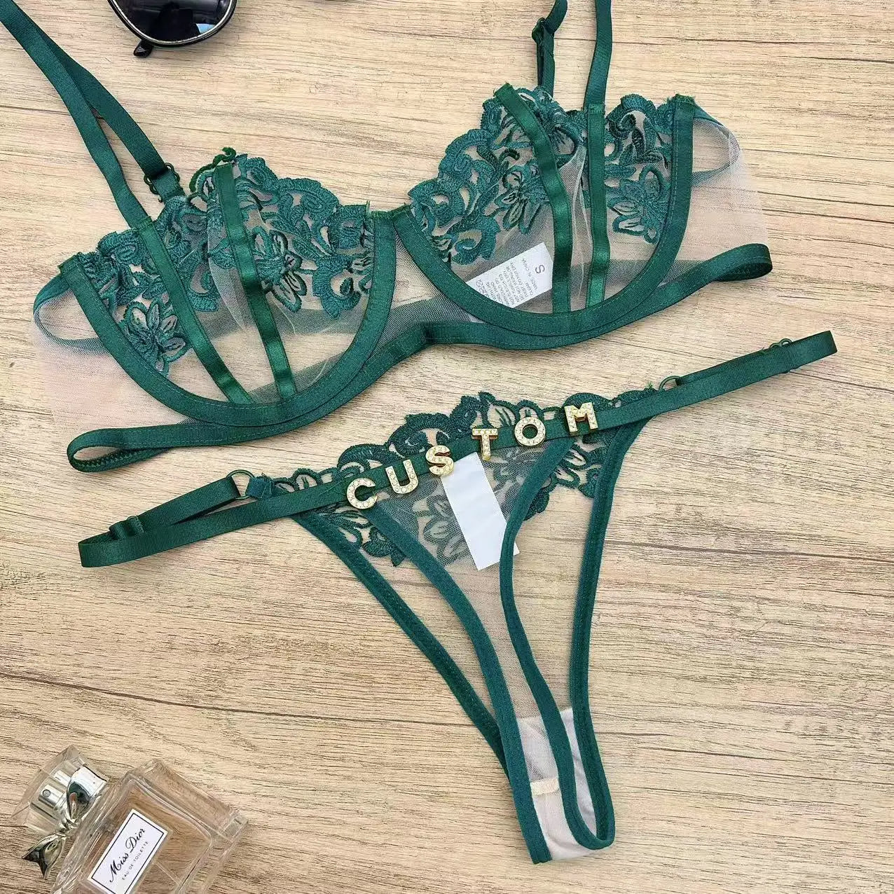 Turn up the allure with our Sage Green Lingerie Set, featuring a delicate triangular cup bra and matching thong. Crafted from soft, breathable fabric in a stunning sage green shade, this set blends elegance with seductive charm. Personalize it with shimmering crystal letters to make it uniquely yours, perfect for anniversaries, honeymoons, or any intimate occasion.
